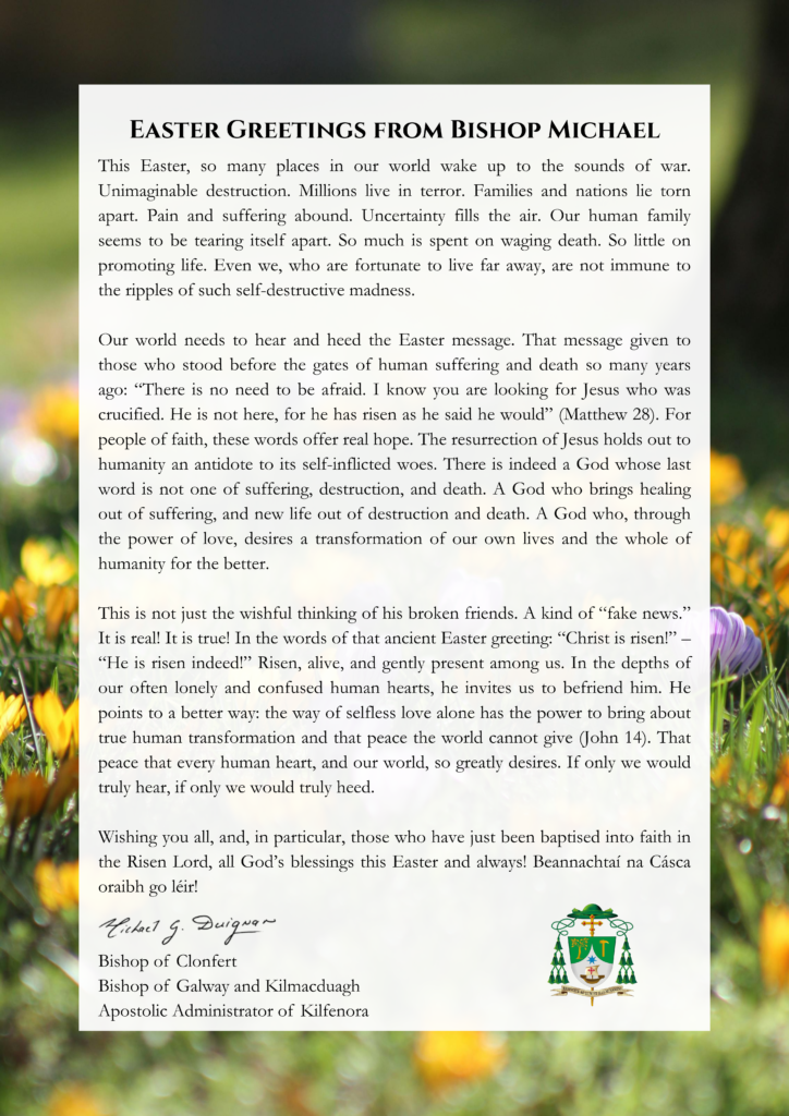 Bishop Duignan extends Easter greetings to the people of the Dioceses.
