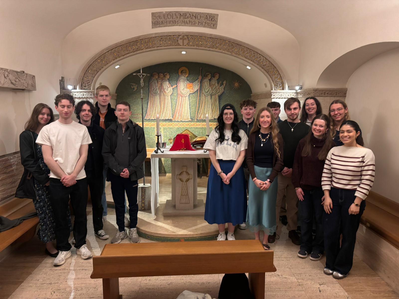 The University of Galway Catholic Society on their pilgrimage to Rome accompanied by Fr Declan Lohan of Renmore Parish. The group of students spent 4 days in Rome with an exciting program that included celebrating Mass in the Irish chapel in the grottos of St Peter’s Basilica, attending a Papal audience in St Peter’s Square, visiting many of the great sights and of course time for ice-cream and pizza!