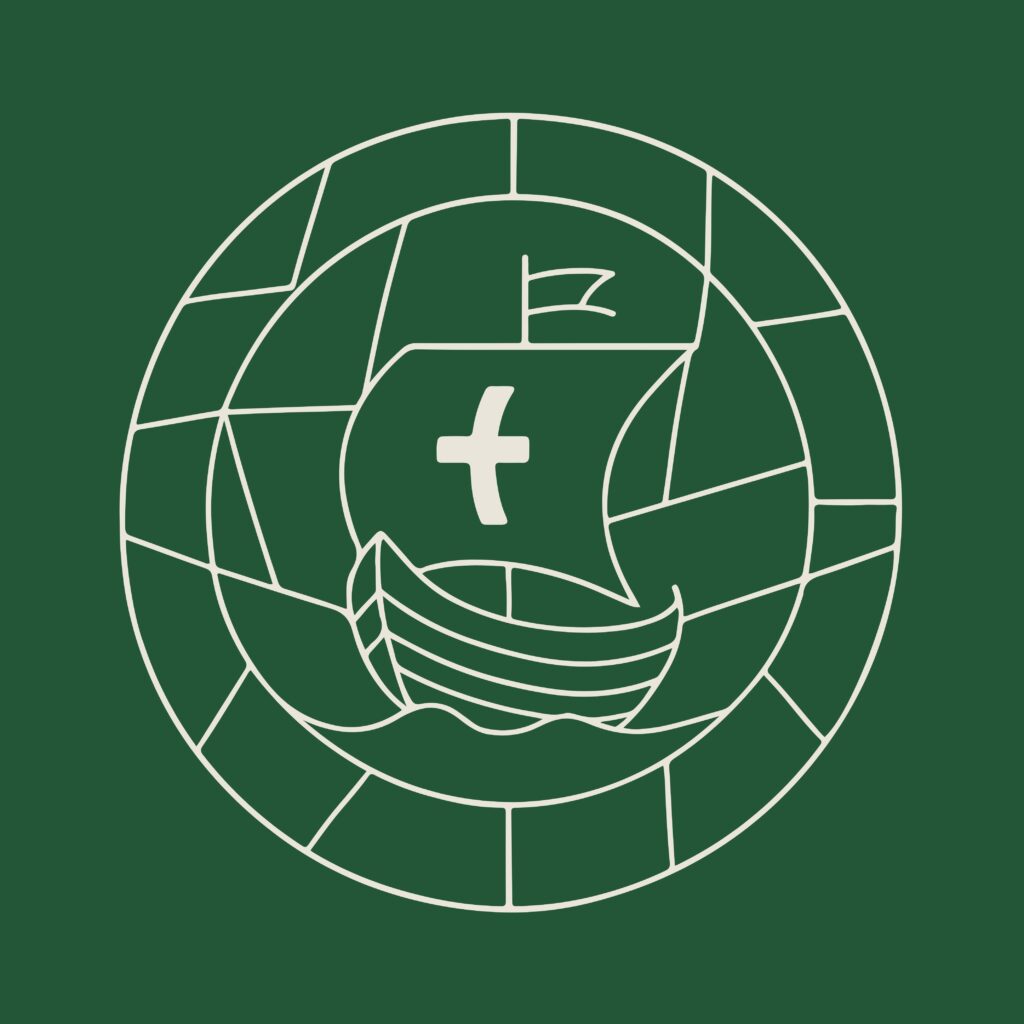 The interdiocesan motif represents our shared work in faith and mission. Its design is inspired by a roundel in the stained glass of the sacristy in Galway Cathedral, depicting the boat of Saint Brendan of Clonfert, the voyager and pilgrim.
